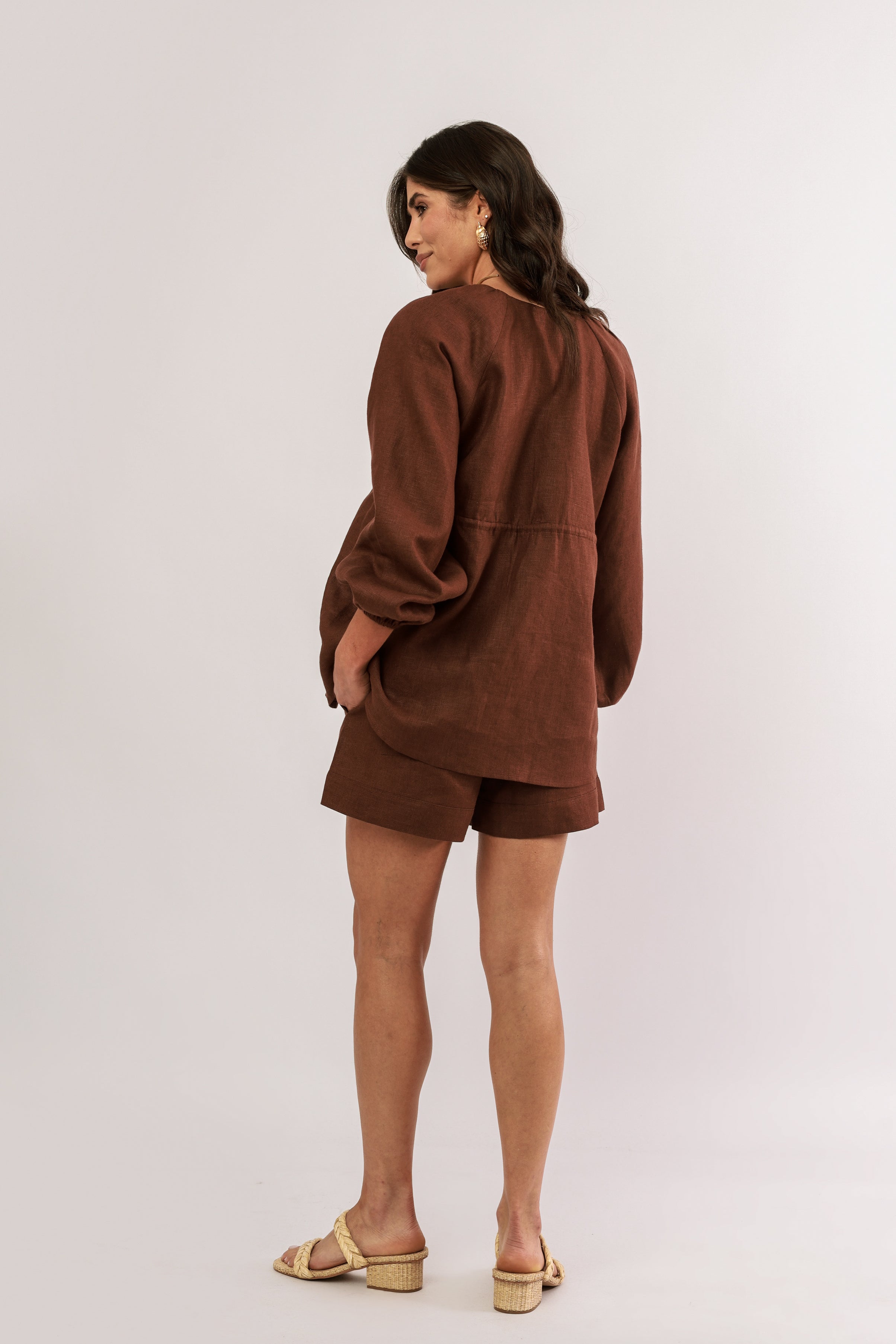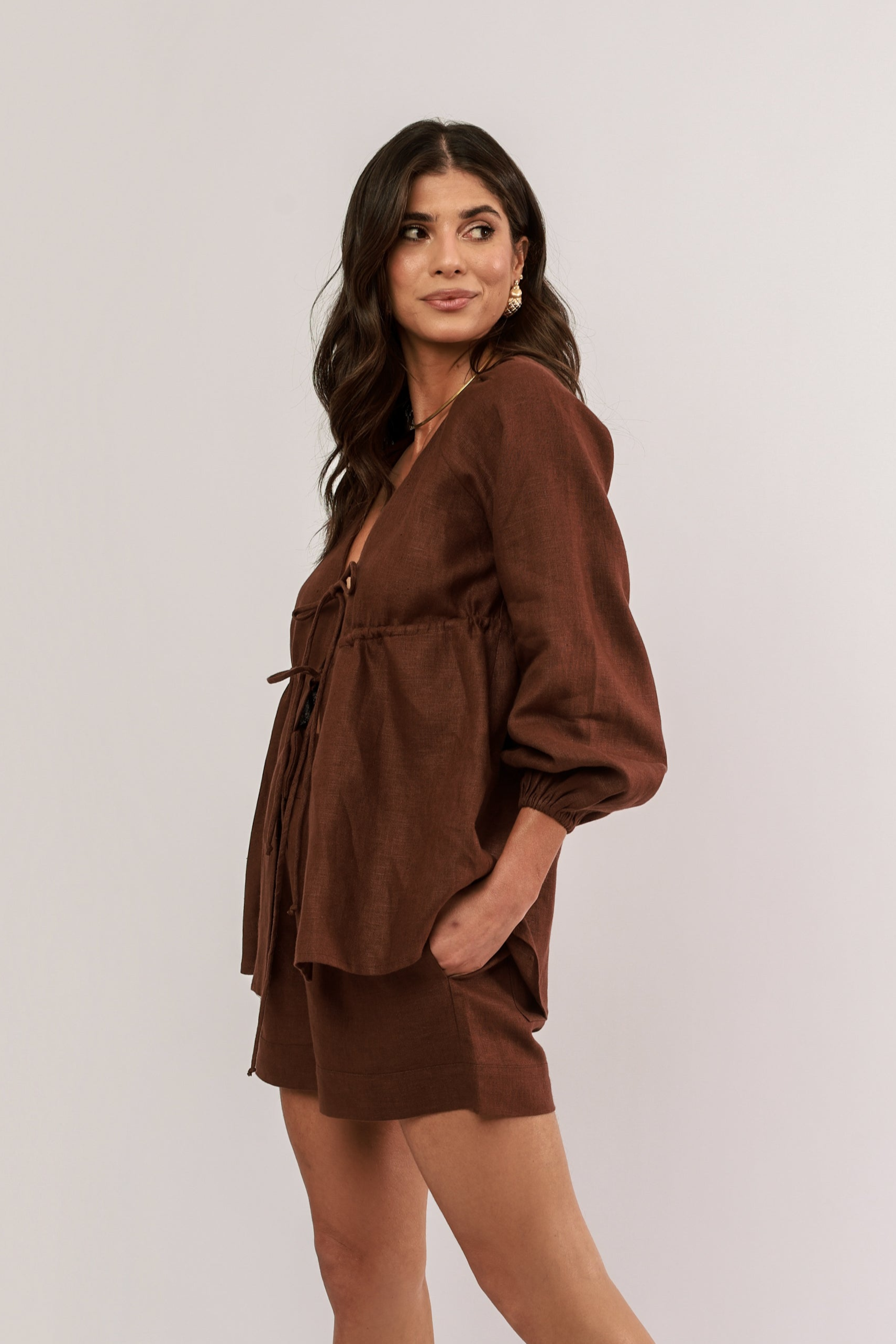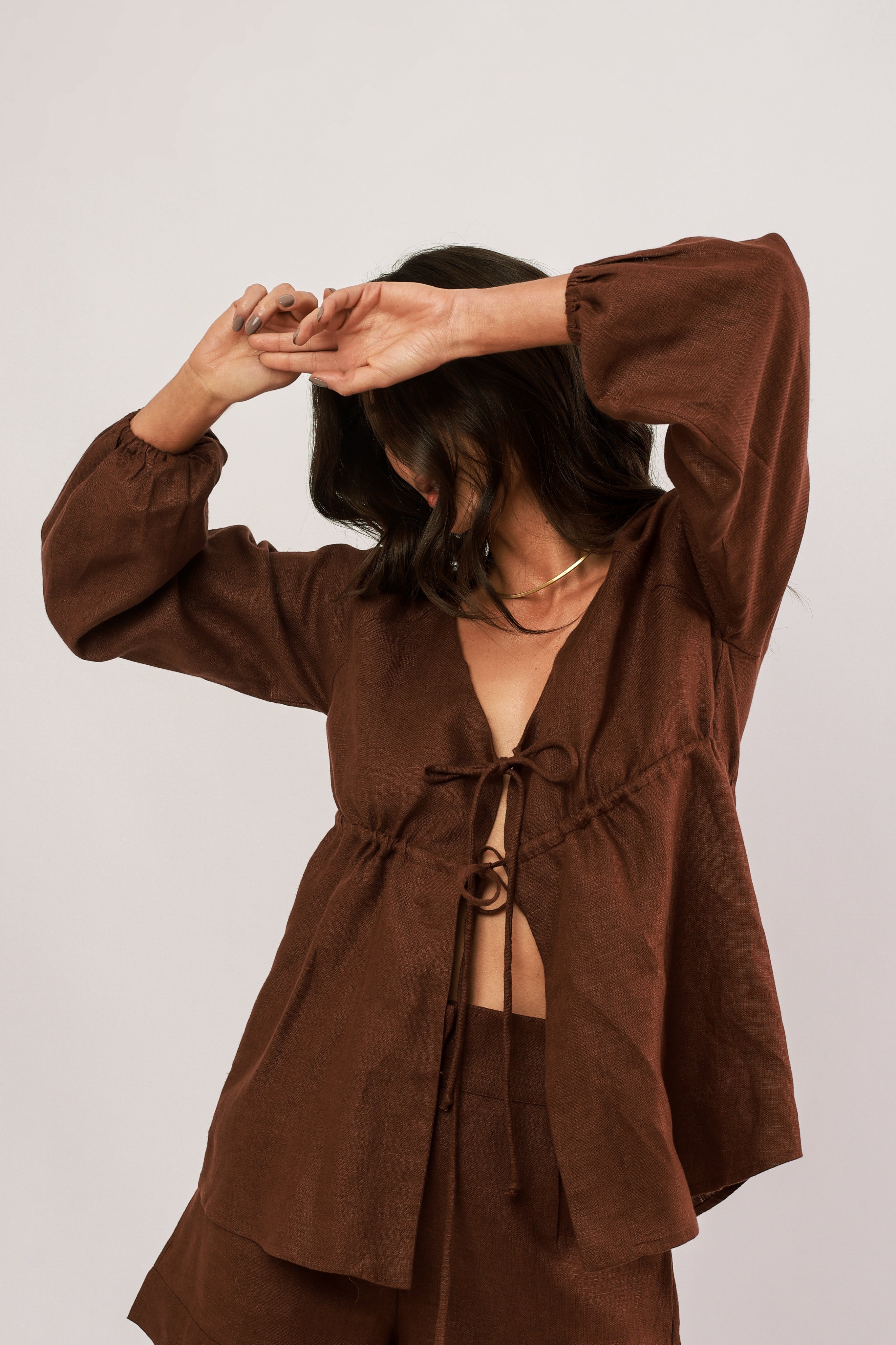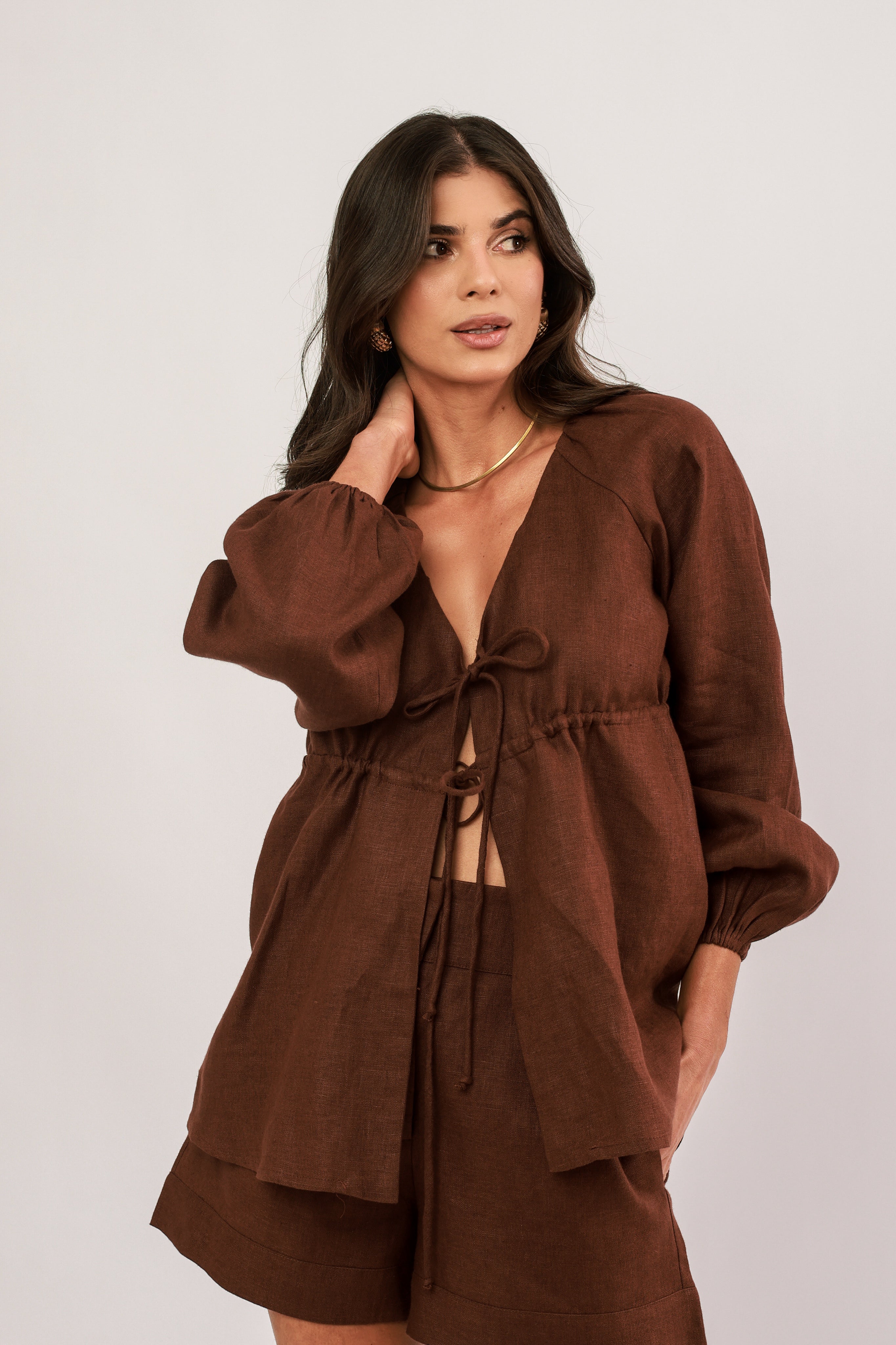 bata amarração 100% linho boemia marrom