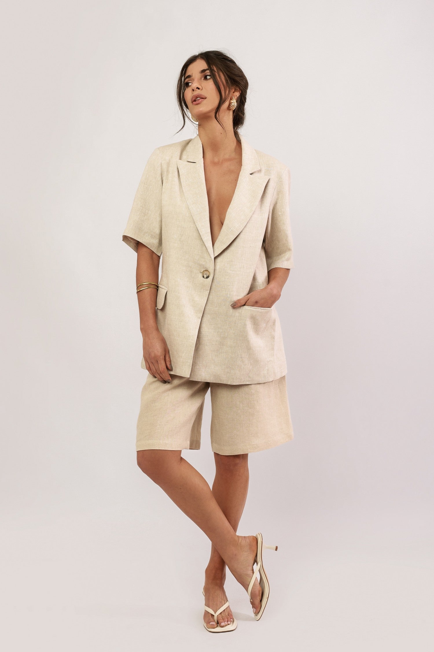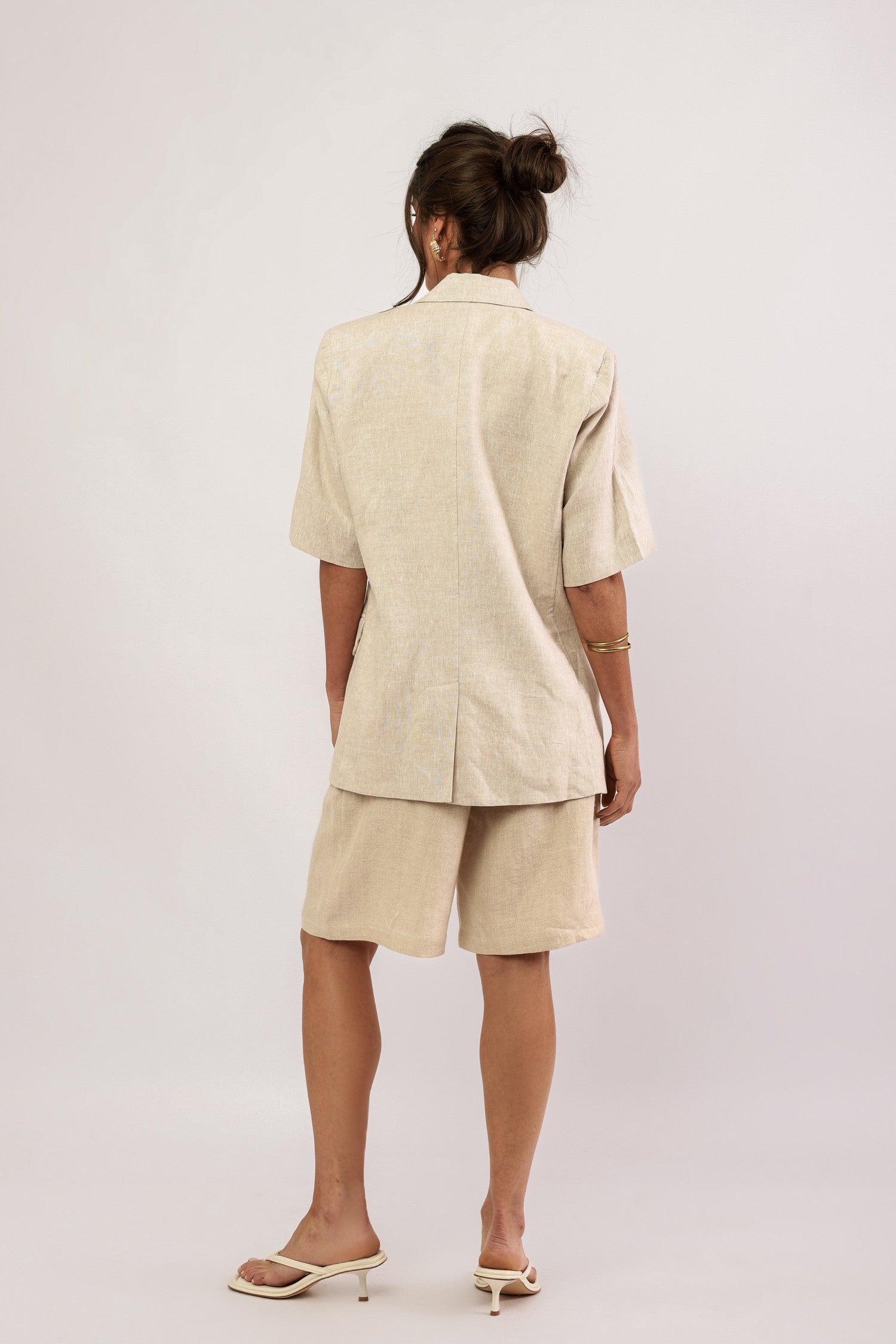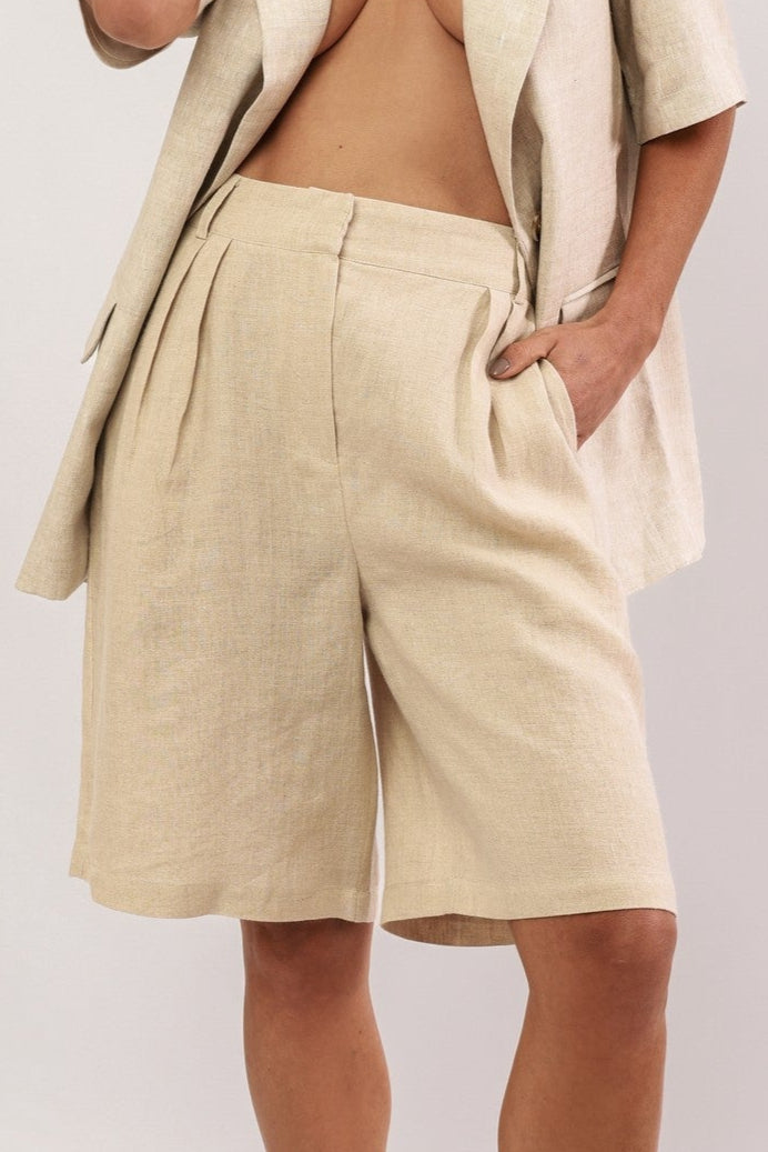 bermuda essência da manhã natural confeccionada em 100% linho, tecido nobre conhecido pela leveza, frescor e toque sofisticado. com caimento estruturado e elegante, a peça garante conforto e estilo, sendo ideal para produções casuais refinadas e looks de verão atemporais. perfeita para quem busca qualidade e autenticidade na moda feminina.