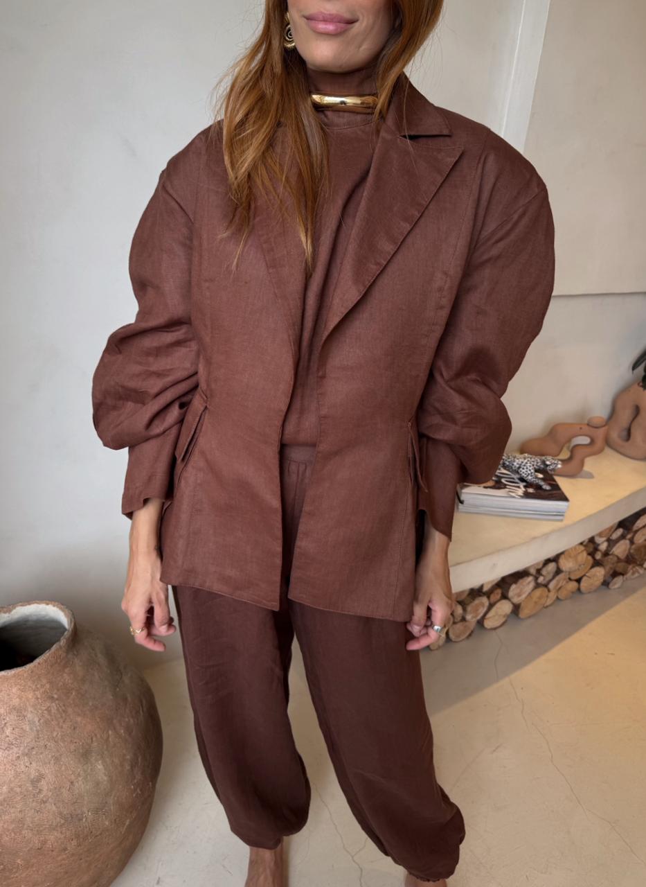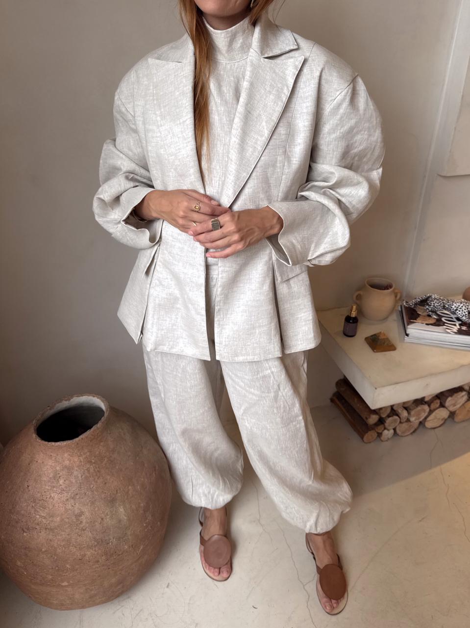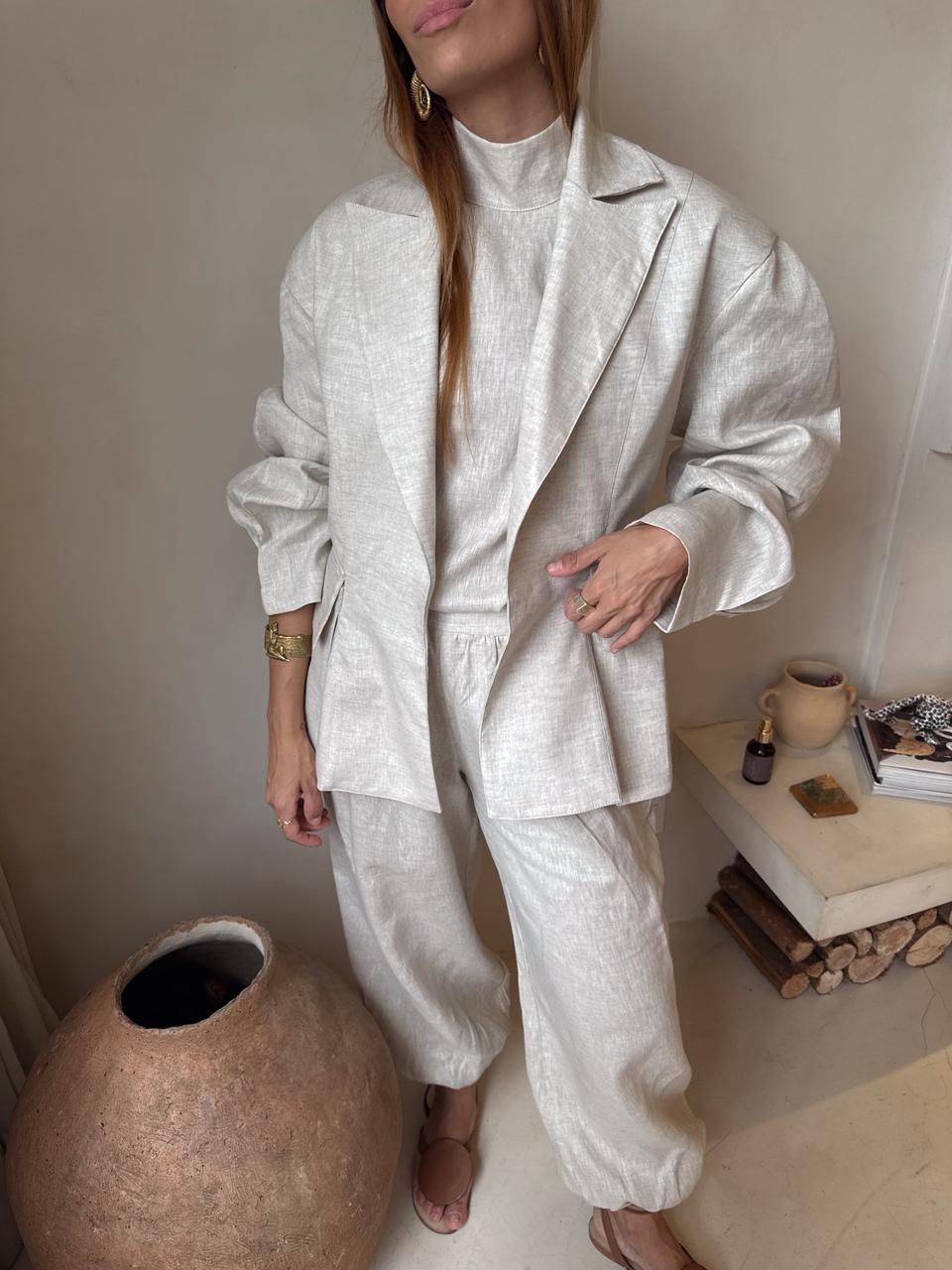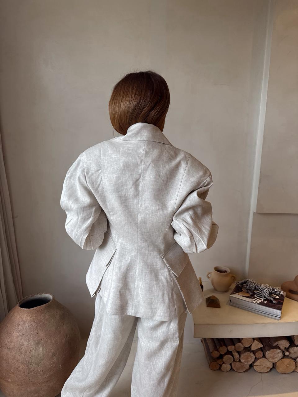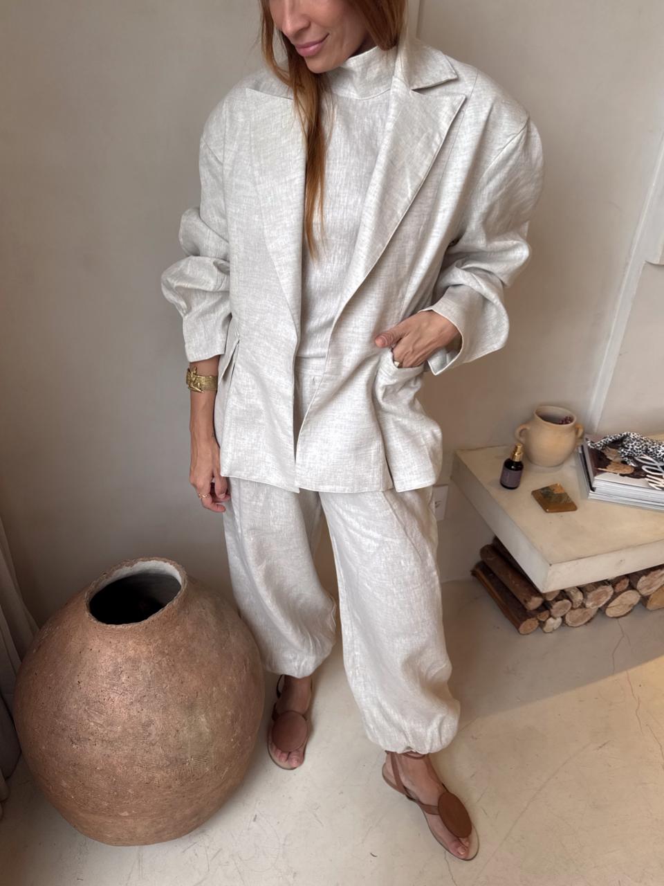 um clássico com toque de leveza e sofisticação. nosso blazer com mangas bufantes é confeccionado em 100% linho, fibra natural que proporciona conforto térmico e caimento elegante. o forro interno é feito em 100% viscose, garantindo suavidade ao toque e respirabilidade. a modelagem tem estrutura leve, trazendo feminilidade e estilo atemporal para composições do dia a dia ou ocasiões especiais.