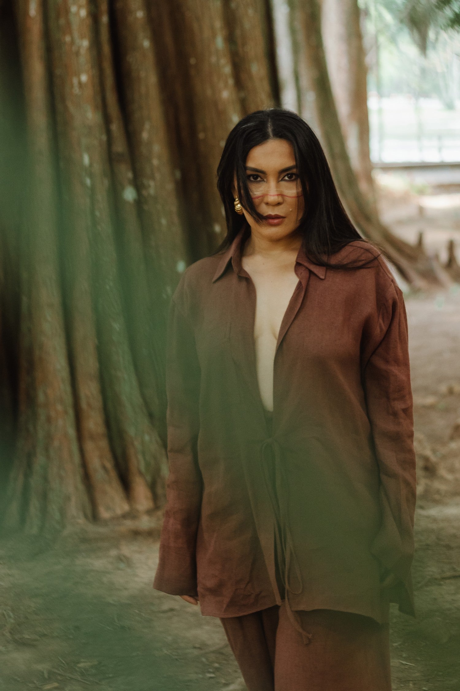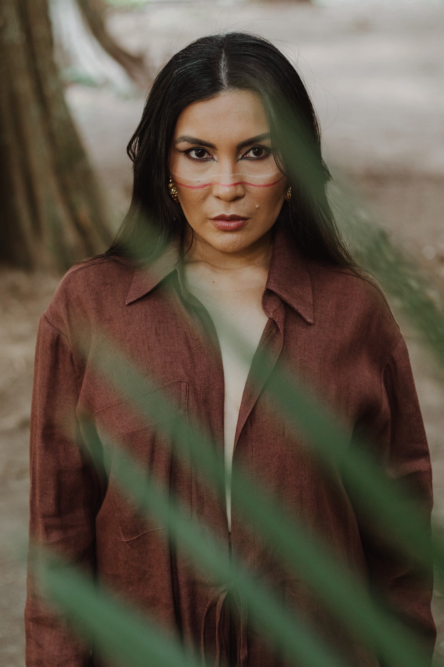 camisa cura marrom