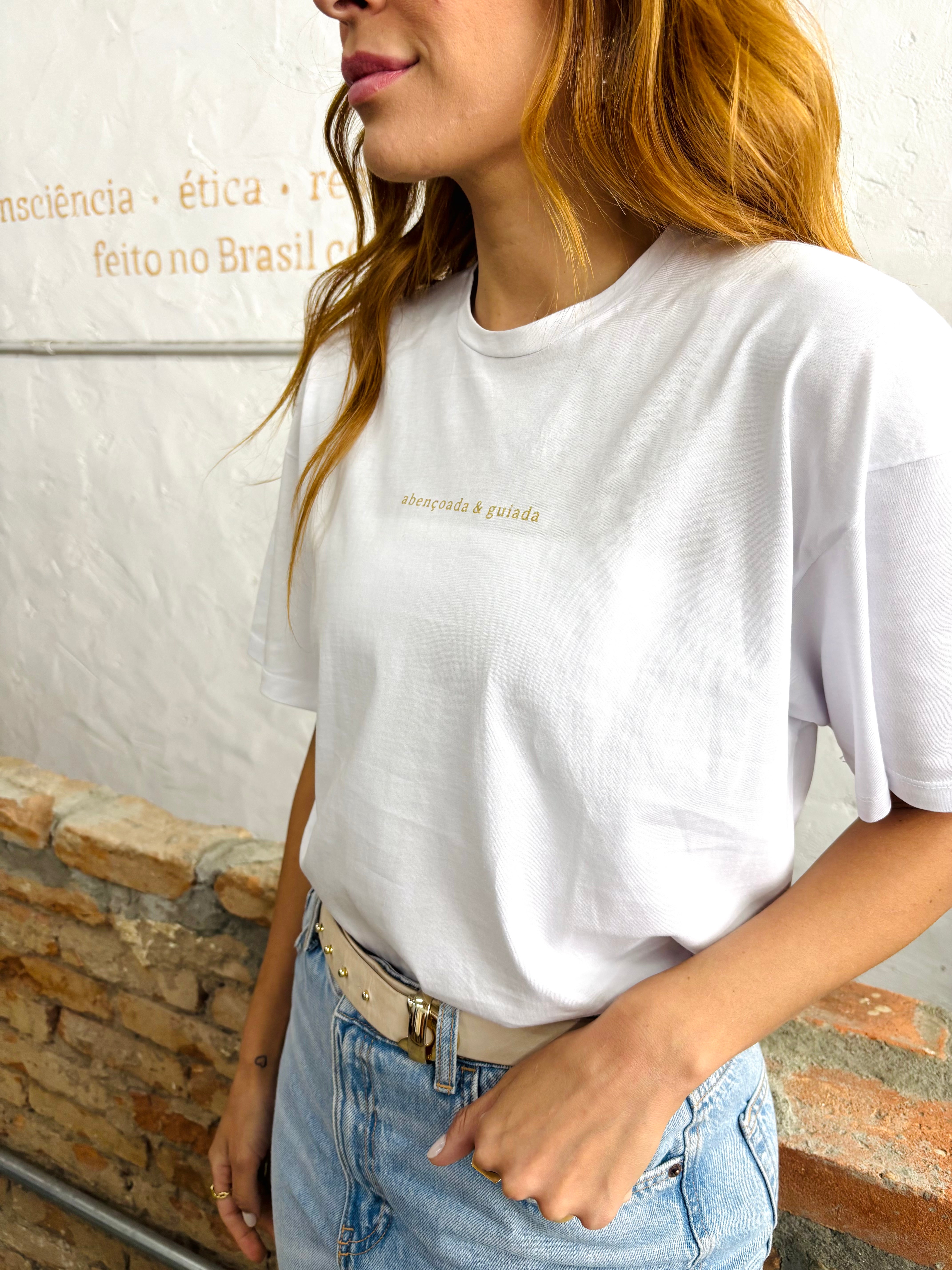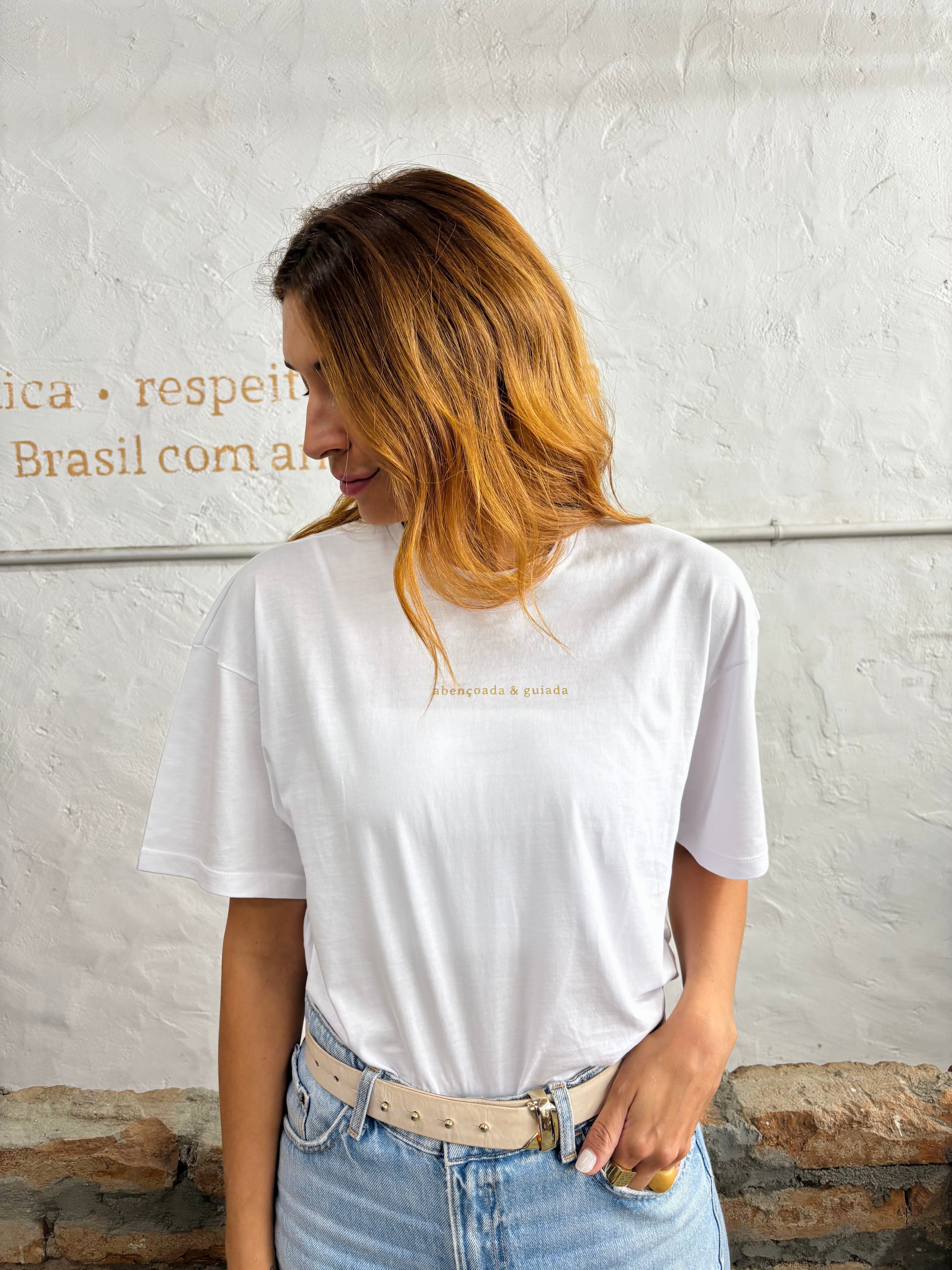 camiseta feita para a deusa que confia no seu caminho. confeccionada em 100% algodão, garante conforto, respirabilidade e estilo no dia a dia. com a mensagem abençoada e guiada, ela te lembra que o universo está ao seu lado em cada passo. ideal para compor looks leves, conscientes e cheios de significado.
