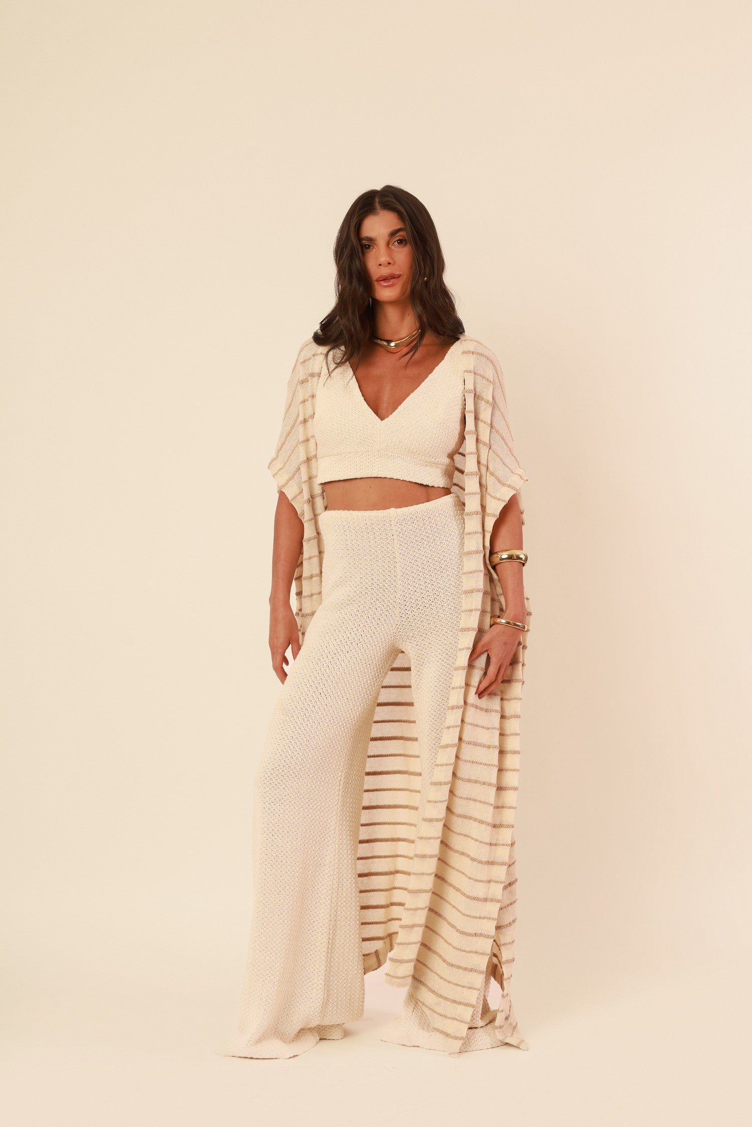 deusa, eleve seu visual com o kimono listrado brisa natural. confeccionado com 99,5% algodão e um toque de 0,5% viscose, ele traz frescor, leveza e um caimento natural que se molda ao corpo com elegância. perfeito para sobrepor produções do dia a dia com charme e praticidade.
