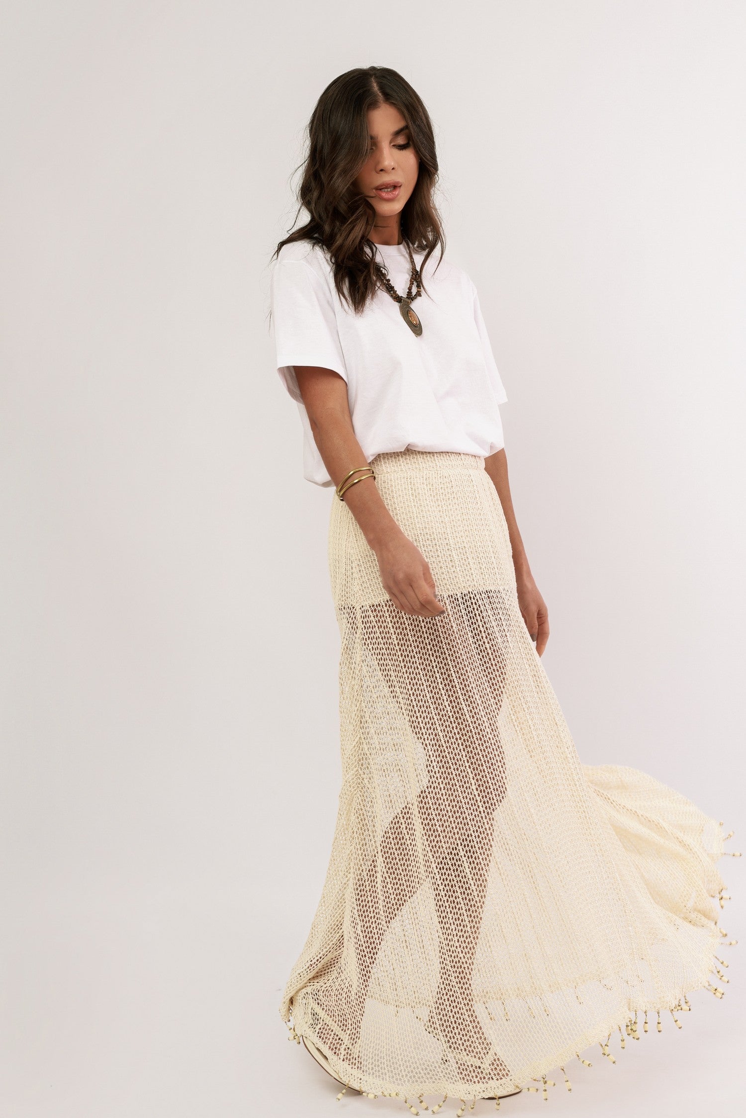 saia vibração serena off white confeccionada em 98% algodão e 2% poliéster, garantindo maciez, leveza e conforto. o detalhe na barra acrescenta sofisticação e estilo, transformando a peça em uma escolha versátil para produções casuais e elegantes. ideal para compor looks femininos modernos com um toque refinado.