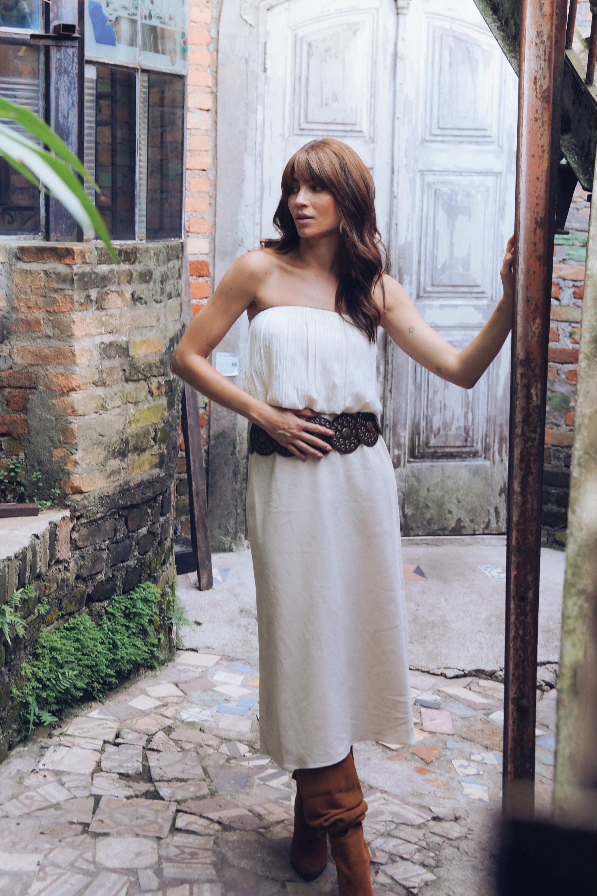 esta saia é uma peça essencial que combina conforto e estilo. confeccionada em tecido liso, sua modelagem fluida oferece um caimento elegante e suave o elástico no cós proporciona um ajuste perfeito e confortável. composição: 55% linho 45% algodão